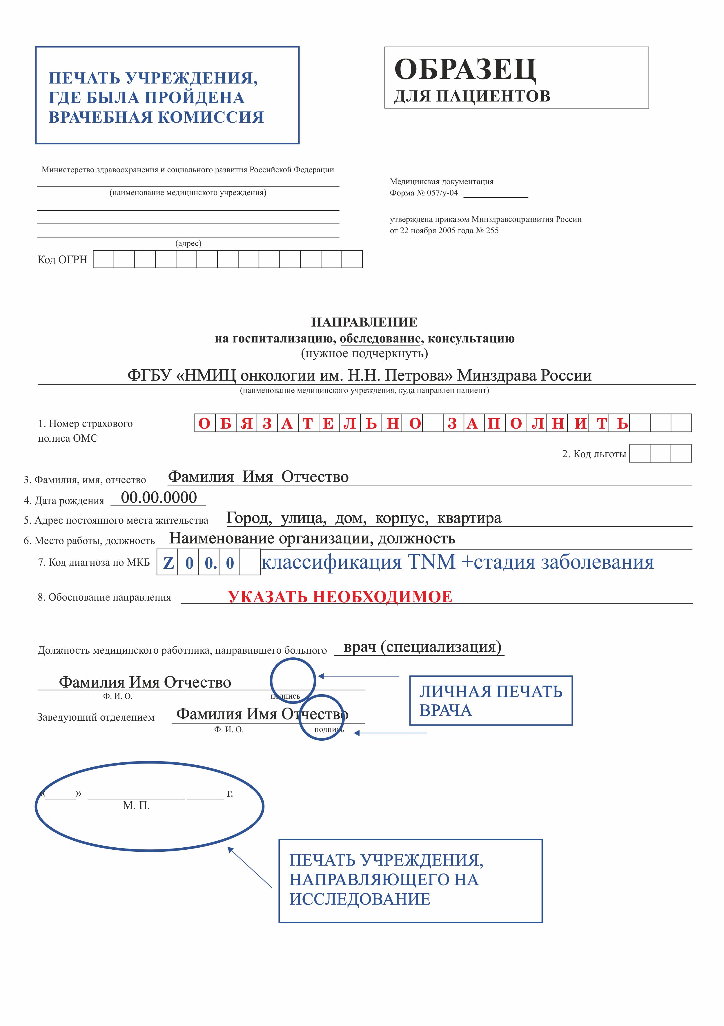 - Направление из государственного медицинского учреждения по форме 0-57/у-04