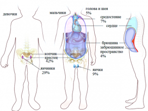 К таким опухолям относятся злокачественные и доброкачественные образования, формирующиеся из первичных половых клеток. В период формирования и развития человеческого эмбриона эти клетки перемещаются, поэтому герминогенные образования могут формироваться и вне гонад (органов, выделяющих половые клетки): в головном мозге, забрюшинной, крестцово-копчиковой зоне, средостении и других областях.