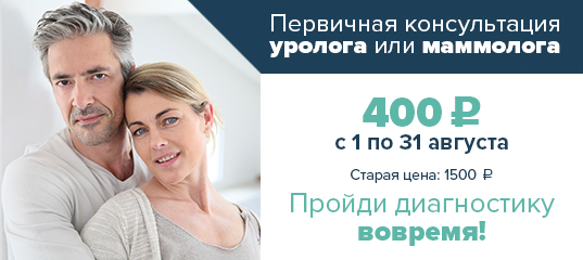 Первичный прием врача уролога-онколога – 400 руб. Скидка - 70% от обычной стоимости 1500 руб.