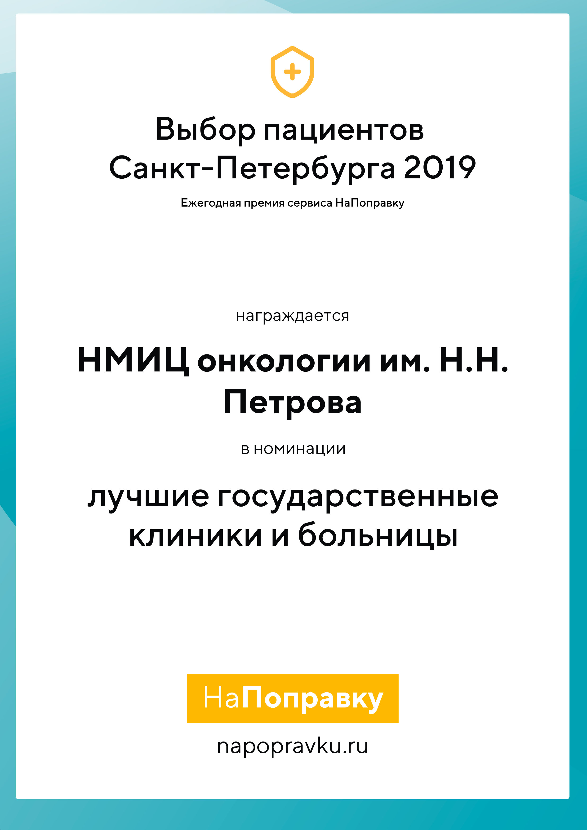 НМИЦ им. Н.Н. Петрова стал победителем ежегодной премии портала НаПоправку