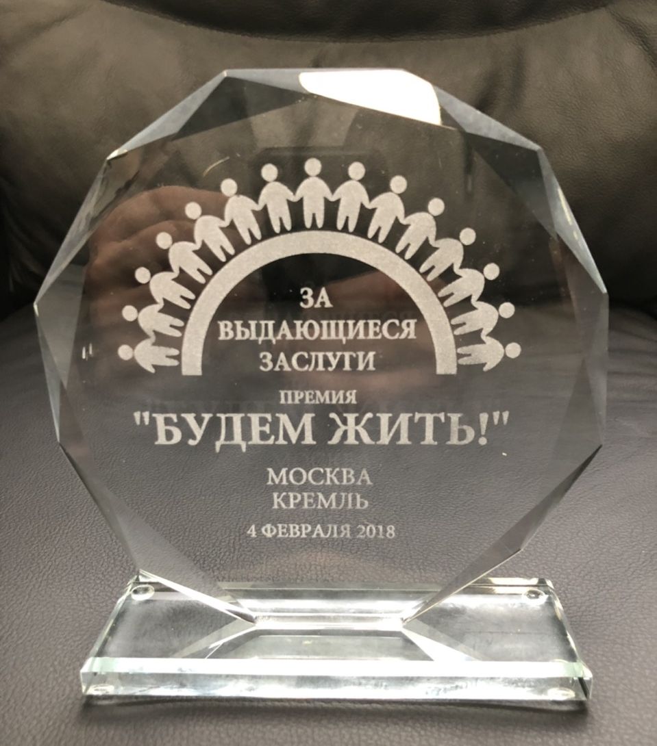 Вручение Всероссийской пациентской премии «Будем жить!» состоялось 4 февраля 2018 года в Государственном Кремлевском Дворце на Торжественной церемонии, посвященной Всемирному дню борьбы против рака.