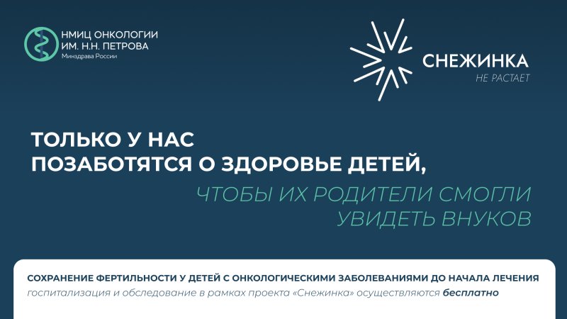 В проекте «Снежинка» работает команда ведущих специалистов НМИЦ онкологии им. Н.Н. Петрова: детские онкологи, хирурги, эндокринологи, гематологи, репродуктологи, эмбриологи, патоморфологи.