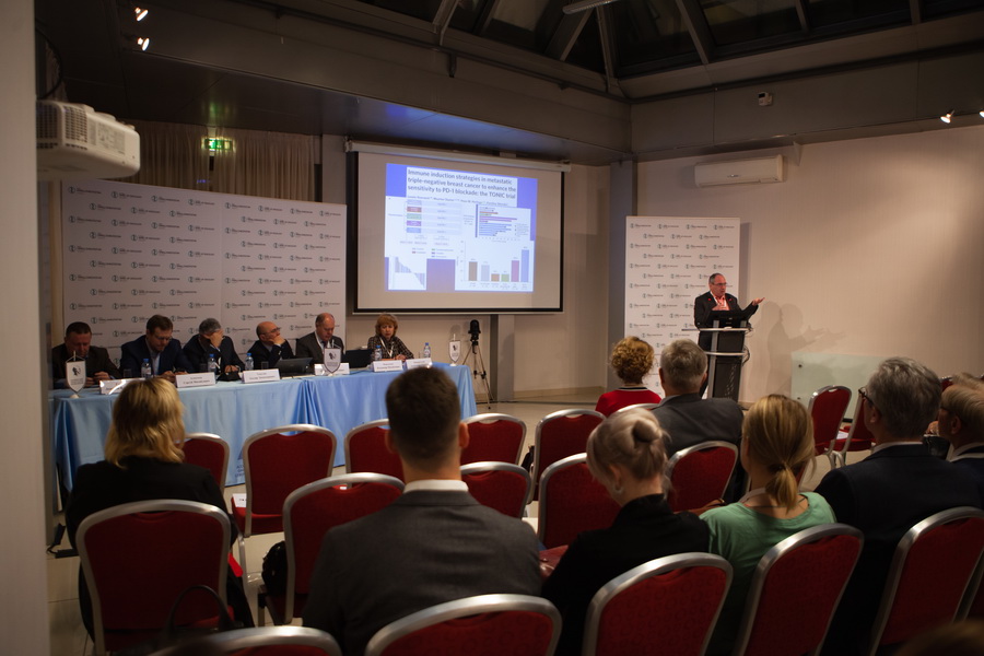 Огромный интерес вызвал доклад члена-корреспондента РАН Евгения Наумовича Имянитова, заведующего научным отделом биологии опухолевого роста ФГБУ «НМИЦ онкологии им. Н.Н. Петрова» Минздрава России, который был посвящен новым мишеням системного лечения злокачественных новообразований. «Благодаря успехам молекулярной биологии каждый год появляются новые мишени, а значит и новые подходы к лечению рака, новые показания для уже известных препаратов с точки зрения биологии развития опухоли», - отметил он в своем выступлении.