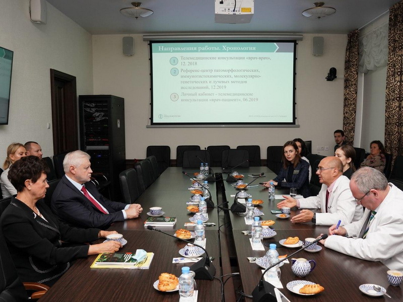 Целью визита Миронова и его помощников стало обсуждение современных медицинских инновационных разработок, особенностей организации референс-центров и оказания телемедицинских консультаций, их роли в реализации федерального проекта «Борьба с онкологическими заболеваниями».