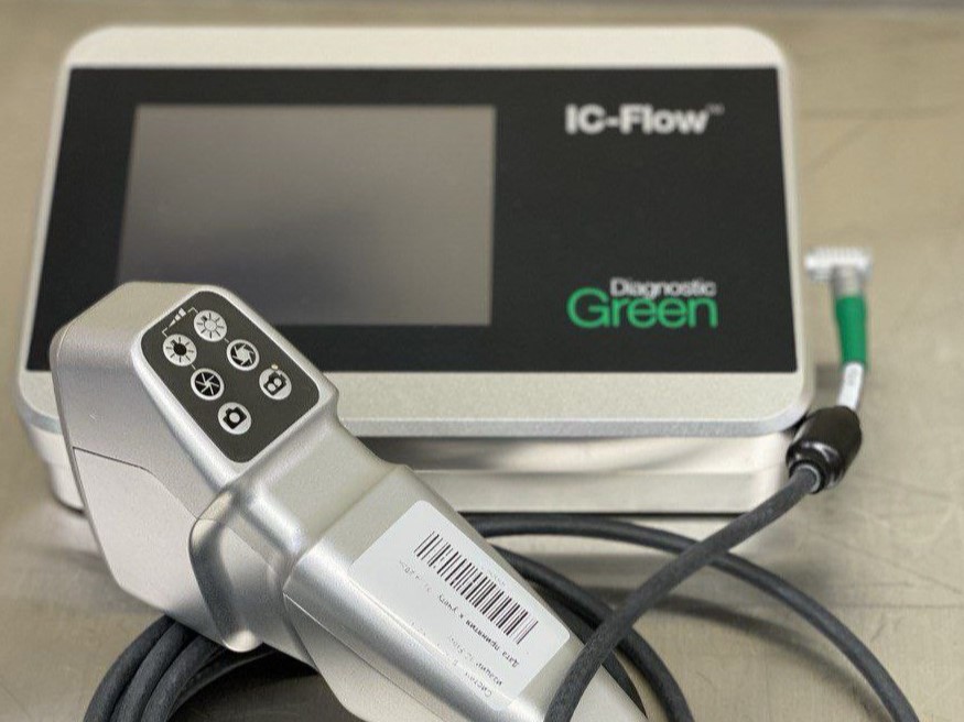 Система визуализации IC-Flow™ – это небольшой аппарат с камерой, сенсорной панелью управления, приёмником инфракрасного излучения и монитором. Он фиксирует свечение флуоресцентного красителя индоцианин зеленый, который вводится пациентам до хирургического вмешательства. Введение красителя не влияет на здоровье пациентов и не требует специальной подготовки. Он безопасен и широко используется в медицине, крайне редко вызывает аллергические реакции.