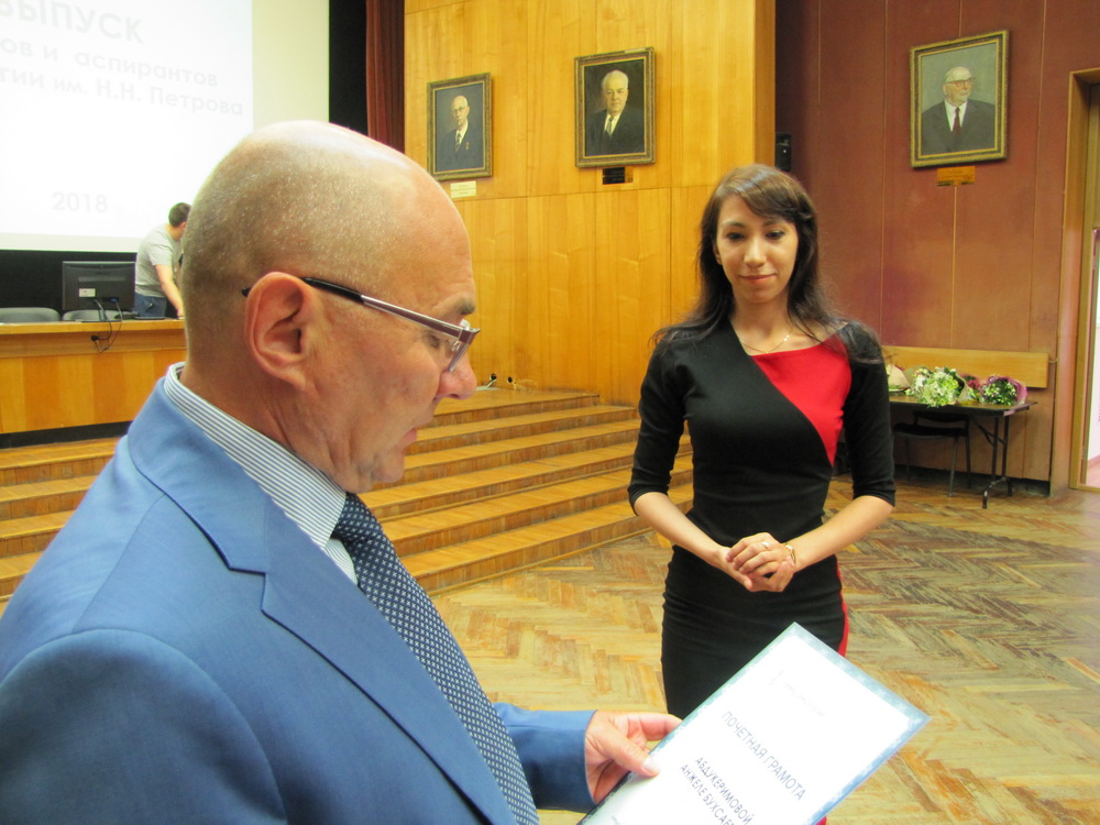 - Кадырлеев Роман Андреевич, грамота за активную научно-практическую деятельность в НМИЦ онкологии им. Н.Н. Петрова.