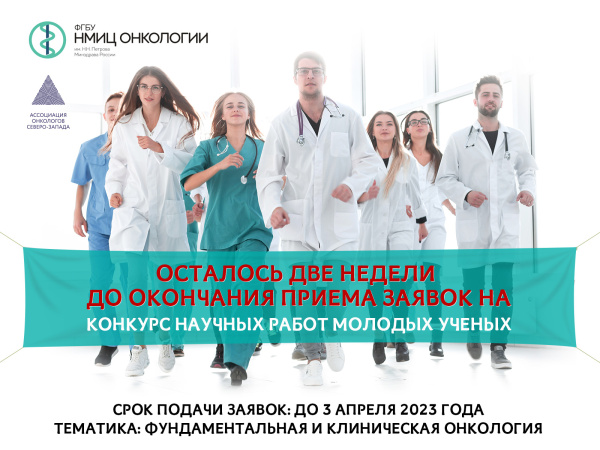 Конкурс научных работ молодых ученых проводится в рамках IX Петербургского международного онкологического форума «Белые ночи 2023». Организатор – Совет молодых ученых ФГБУ «НМИЦ онкологии им. Н.Н. Петрова» Минздрава России.