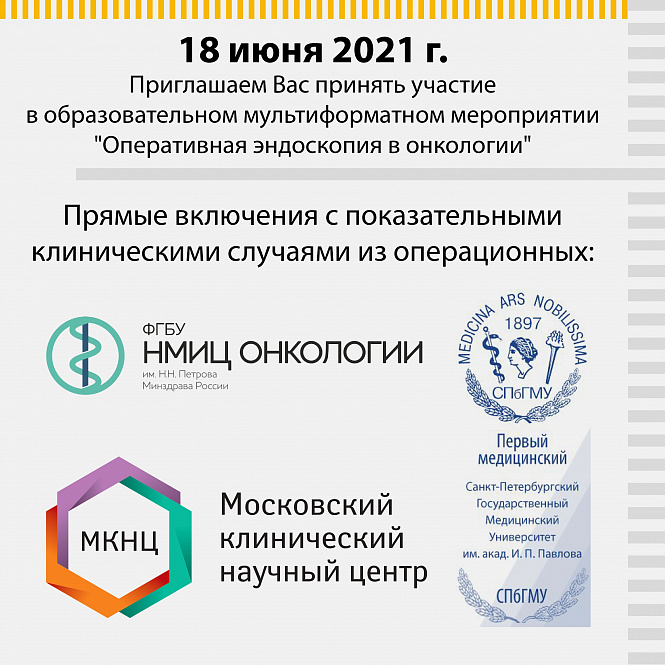 Приглашаем Вас принять онлайн - участие 18 июня 2021 года в мультиформатном мероприятии «Оперативная эндоскопия в онкологии».