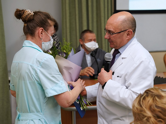 В предпраздничный день, 5 марта, представительниц прекрасной части коллектива НМИЦ онкологии им. Н.Н. Петрова поздравили с Международным женским днем.