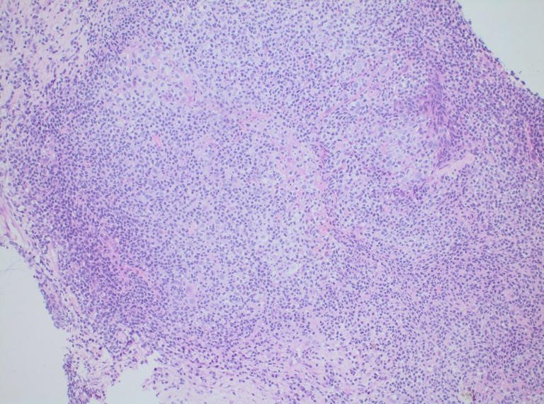 Существуют объективные трудности клинической и морфологической диагностики опухолей средостения, особенно лимфоидной природы. Получить диагностический материал сложно, для этого используют различные виды биопсий, но полученный материал зачастую небольшого объема и деформирован. Помимо малого количества и деформации материала, что само по себе затрудняет морфологическую диагностику, лимфомы средостения демонстрируют значительную вариабельность гистологических и цитологических изменений, что влечет за собой необходимость выполнения иммуногистохимического исследования во всех случаях (рис.8,9).