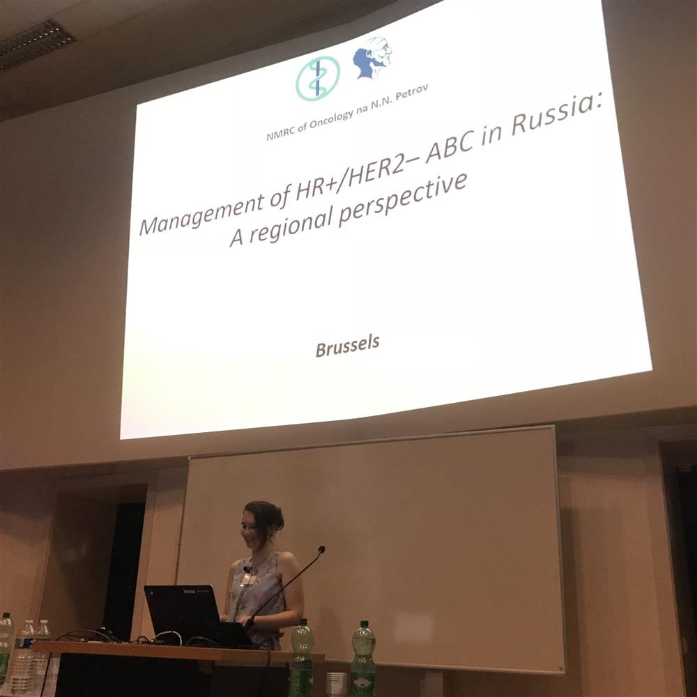 Выступление клинического ординатора Екатерины Александровны Коробейниковой с докладом на International Breast Cancer Academy